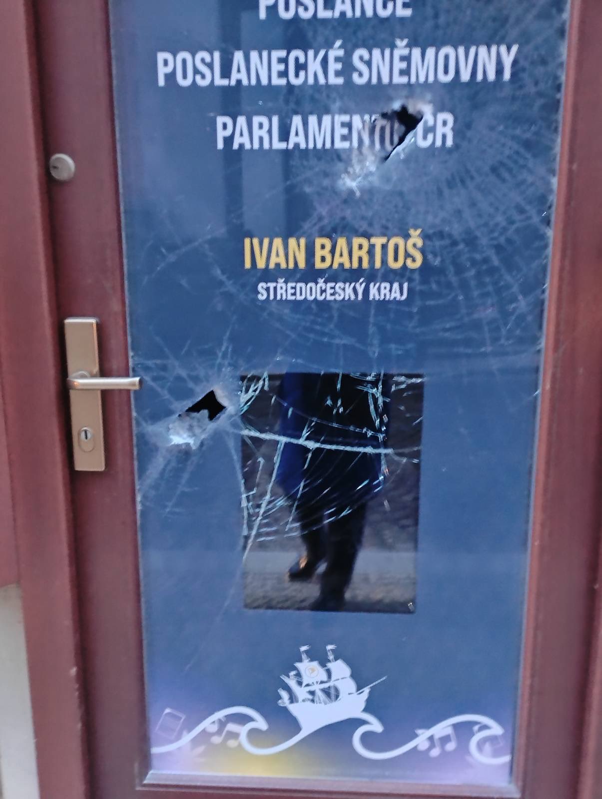Na kancelář Ivana Bartoše zaútočil sekerou neznámý útočník