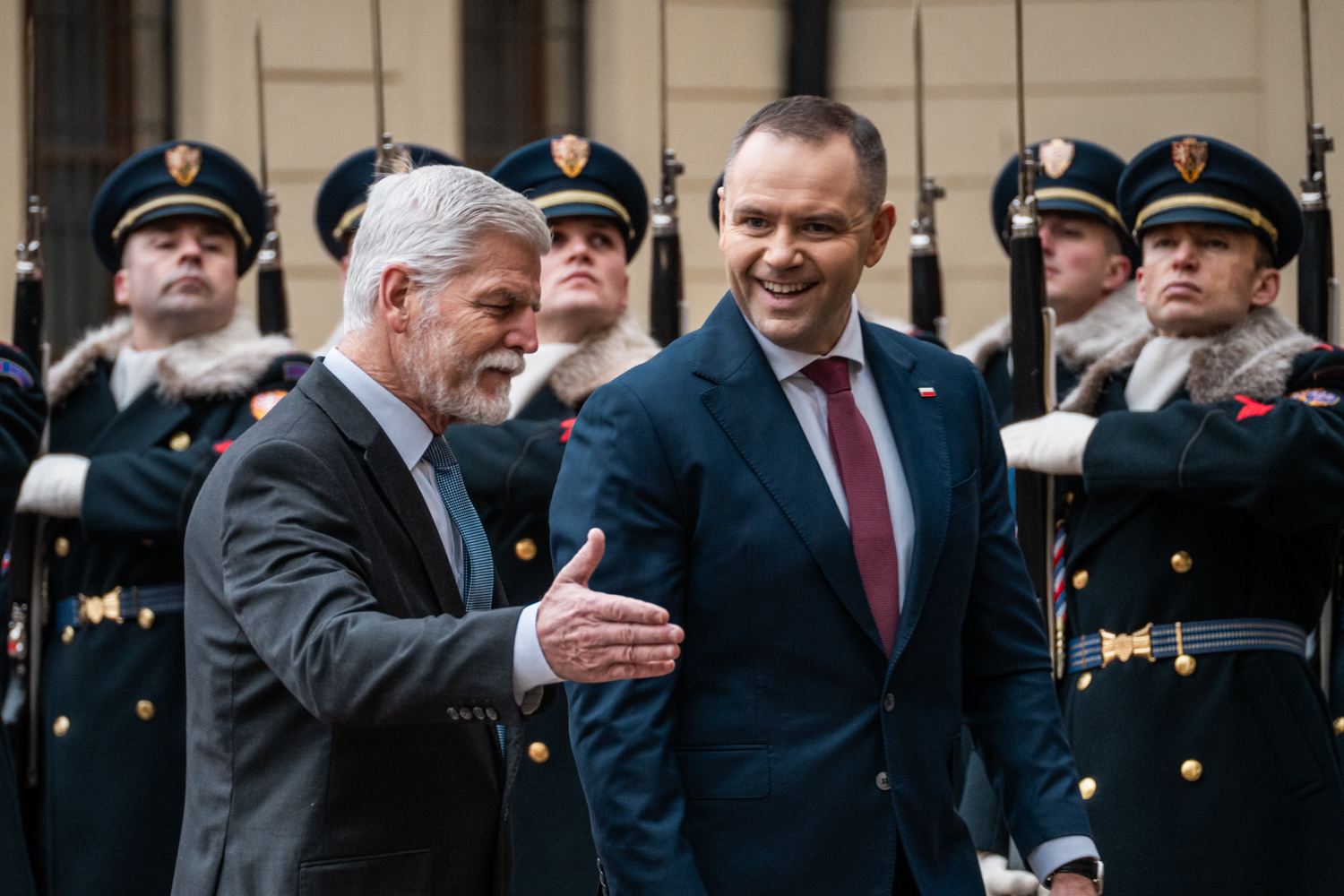 Galerie | OBRAZEM: Nawrocki je v Česku poprvé jako polský prezident. Pavel ho přijal na Hradě