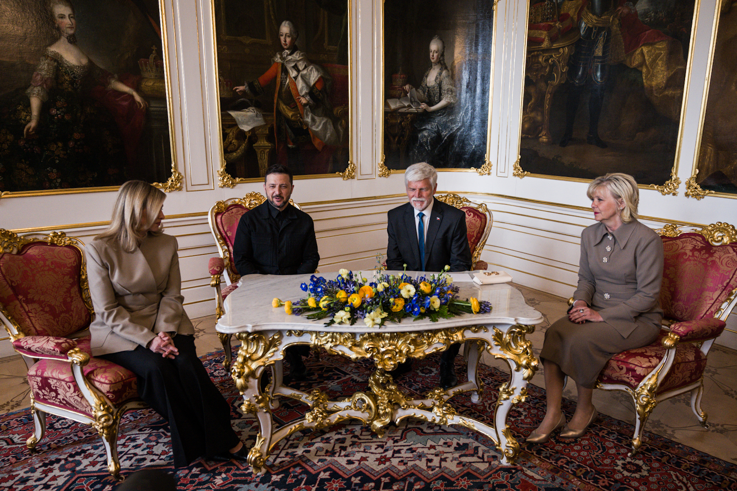 Volodymyr Zelenskyj a Olena Zelenská se na Pražském hradě sešli s Petrem Pavlem a Evou Pavlovou Foto: Michael Zelinka / INCORP images