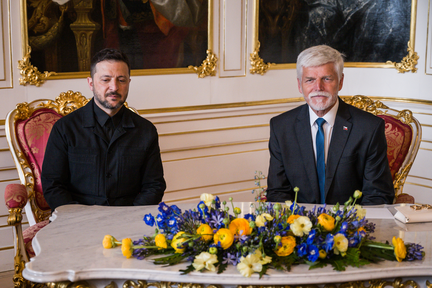 Volodymyr Zelenskyj a Olena Zelenská se na Pražském hradě sešli s Petrem Pavlem a Evou Pavlovou Foto: Michael Zelinka / INCORP images