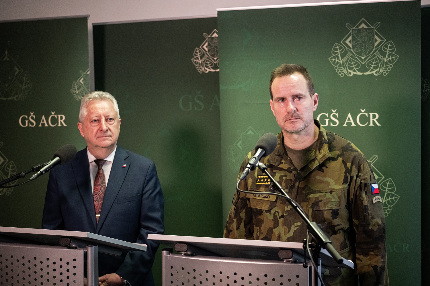 Jaromír Zůna a Karel Řehka na tiskové konferenci po jednání velitelského shromáždění Foto: Michael Zelinka / INCORP images