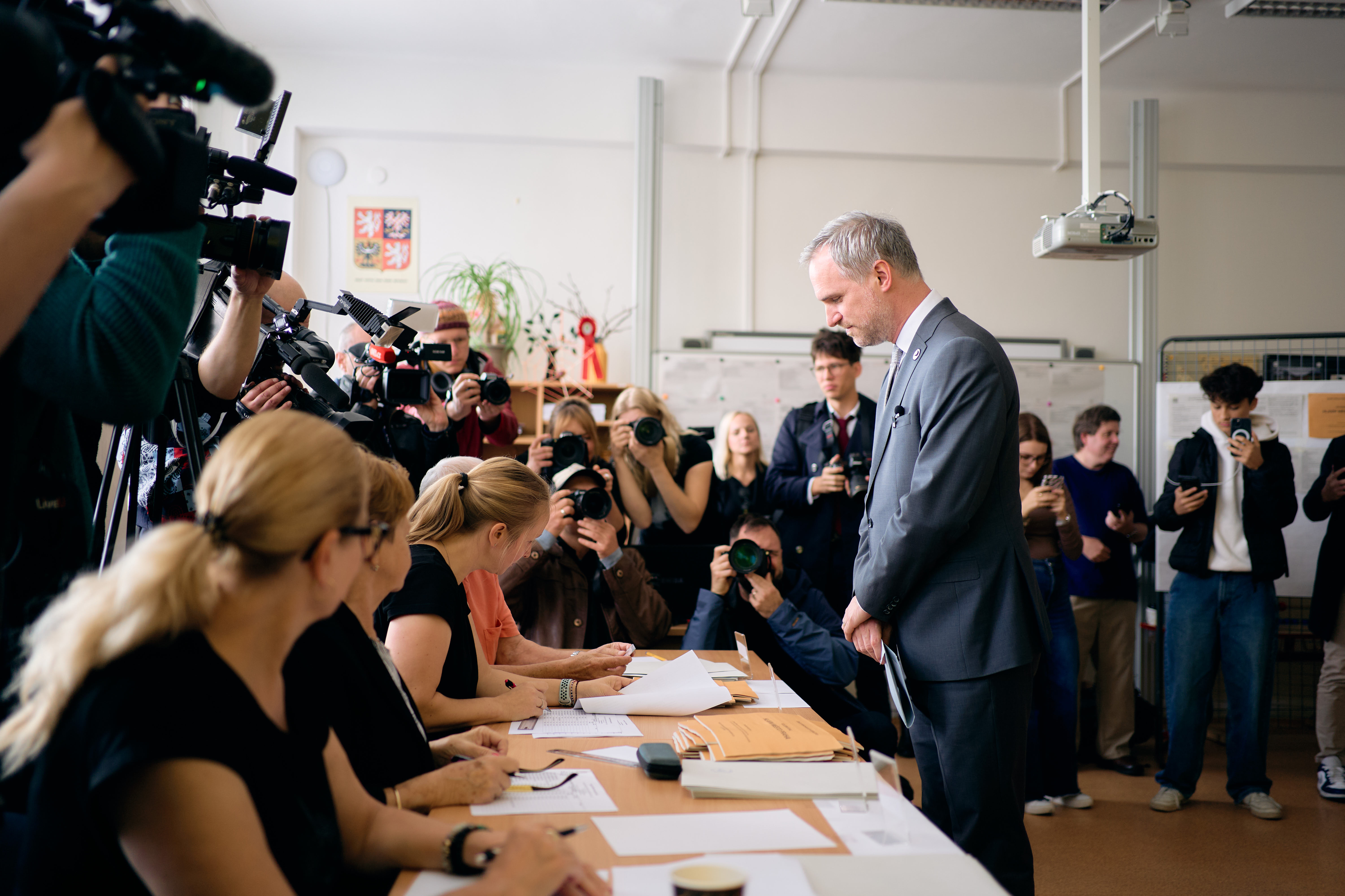 OBRAZEM: Volby v plném proudu: Pavel očekává krušná vyjednávání, Babiš volil v Ostravě