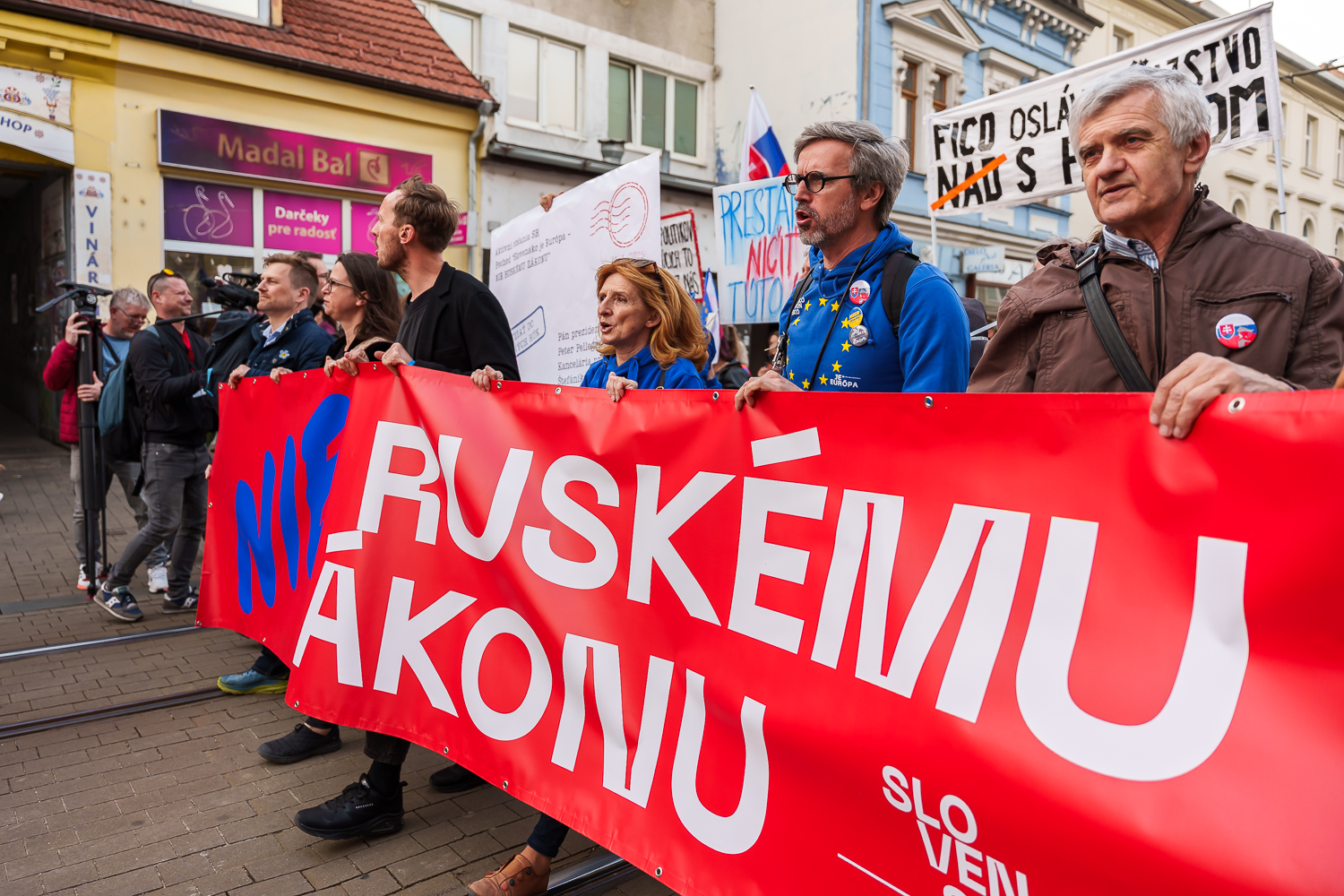 "Ne ruskému právu." Lidé po celém Slovensku protestují proti kontroverzní novele inspirované Moskvou