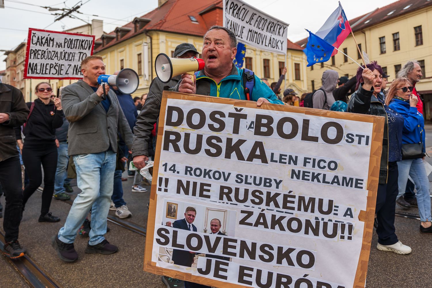 "Ne ruskému právu." Lidé po celém Slovensku protestují proti kontroverzní novele inspirované Moskvou
