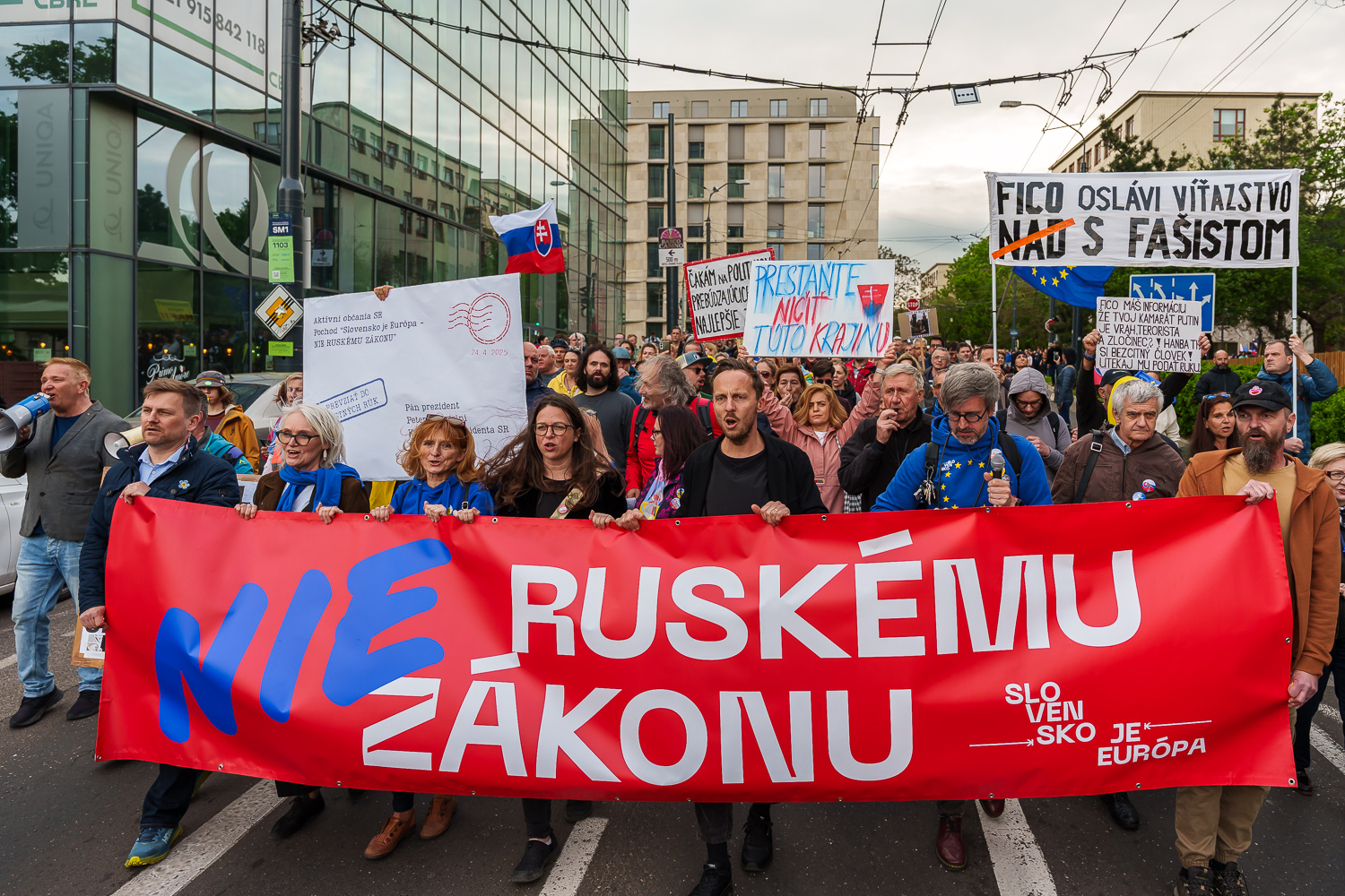 "Ne ruskému právu." Lidé po celém Slovensku protestují proti kontroverzní novele inspirované Moskvou