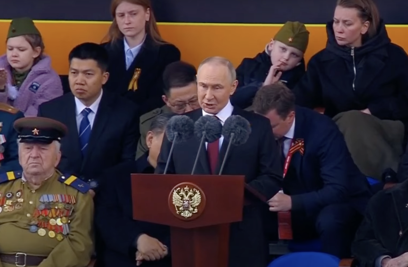 Vladimir Putin promlouvá na oslavách u příležitosti 80. výročí konce druhé světové války. (9.5.2025) Foto: reprofoto South China Morning Post