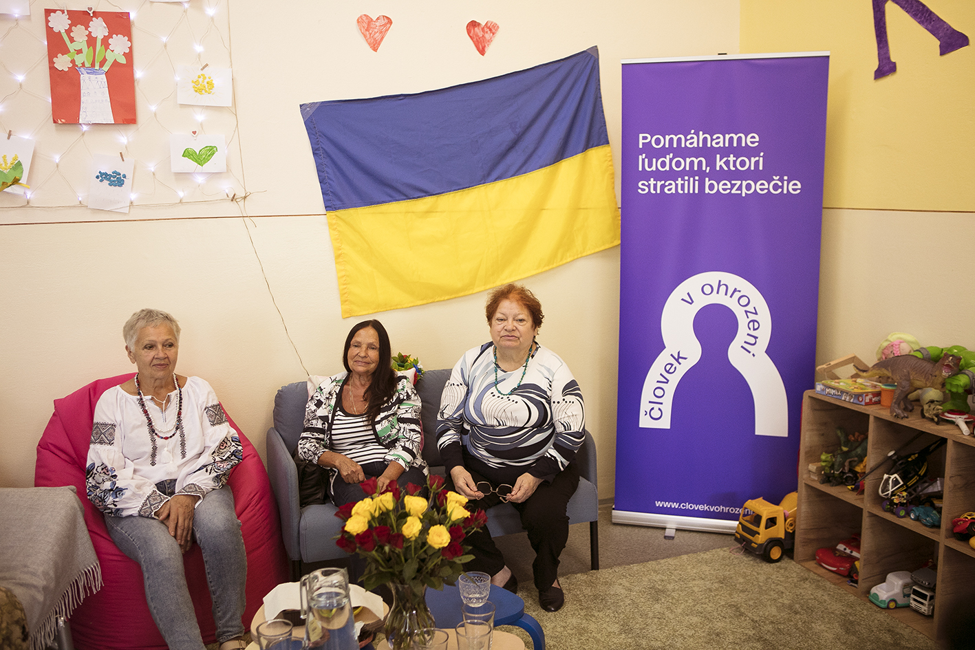 Ukrajinské ženy, které musely ujít před válkou a našly útočiště v Bardějově, se setkávají v Klubovně Človeka v ohrození. Foto: Človek v ohrození